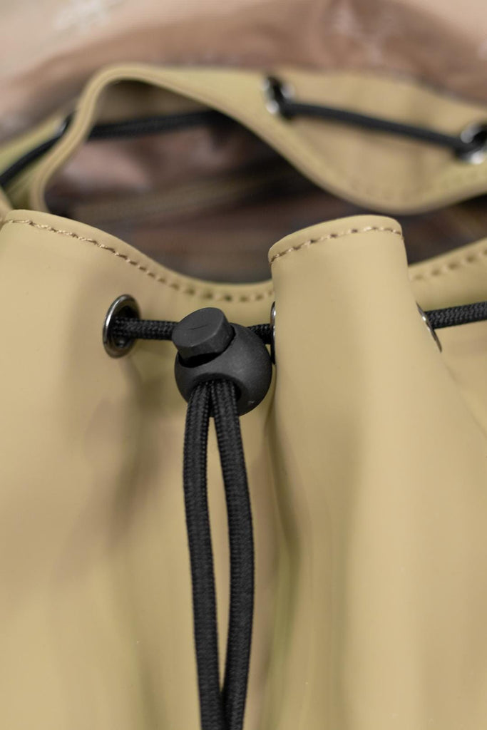 - Drawstring and buckle closure