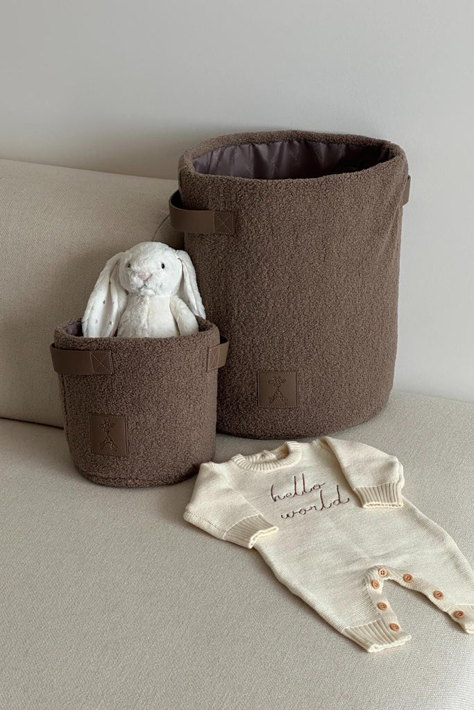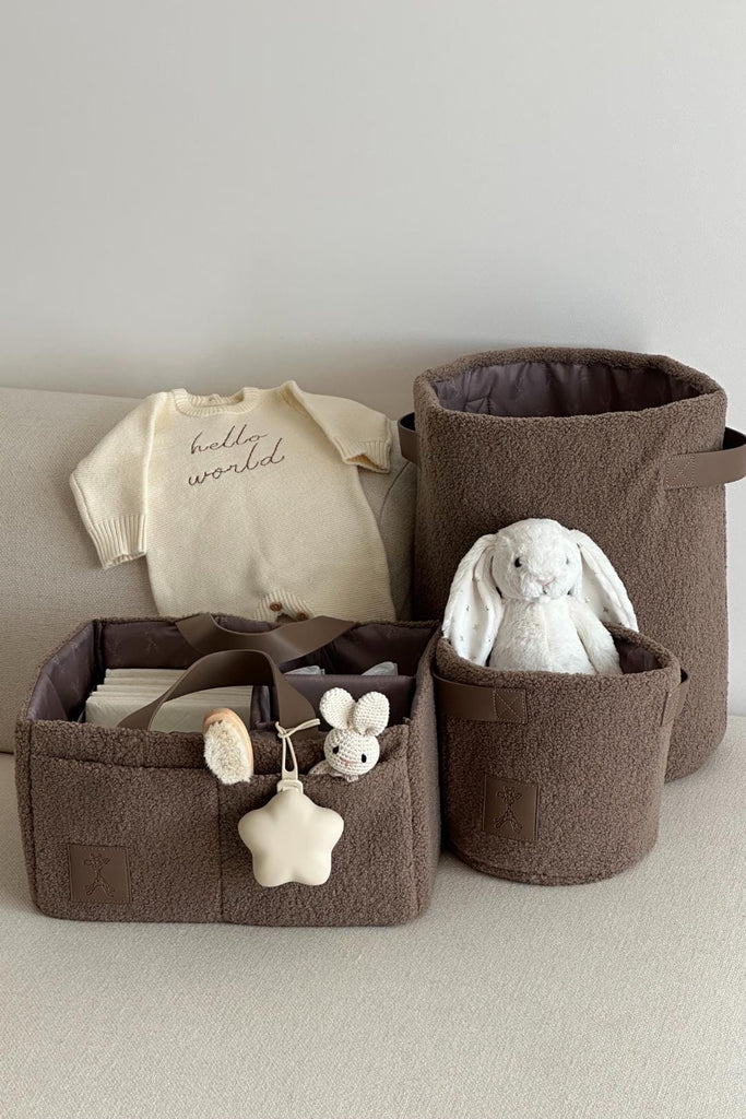 Organise your nursery in style with our Teddy storage basket. Designed to perfectly match our bestselling Teddy Nappy Caddy, this set of two baskets is available in sand beige and caramel mocha. Keep your baby's essentials easily accessible and add a touch of charm to your space.